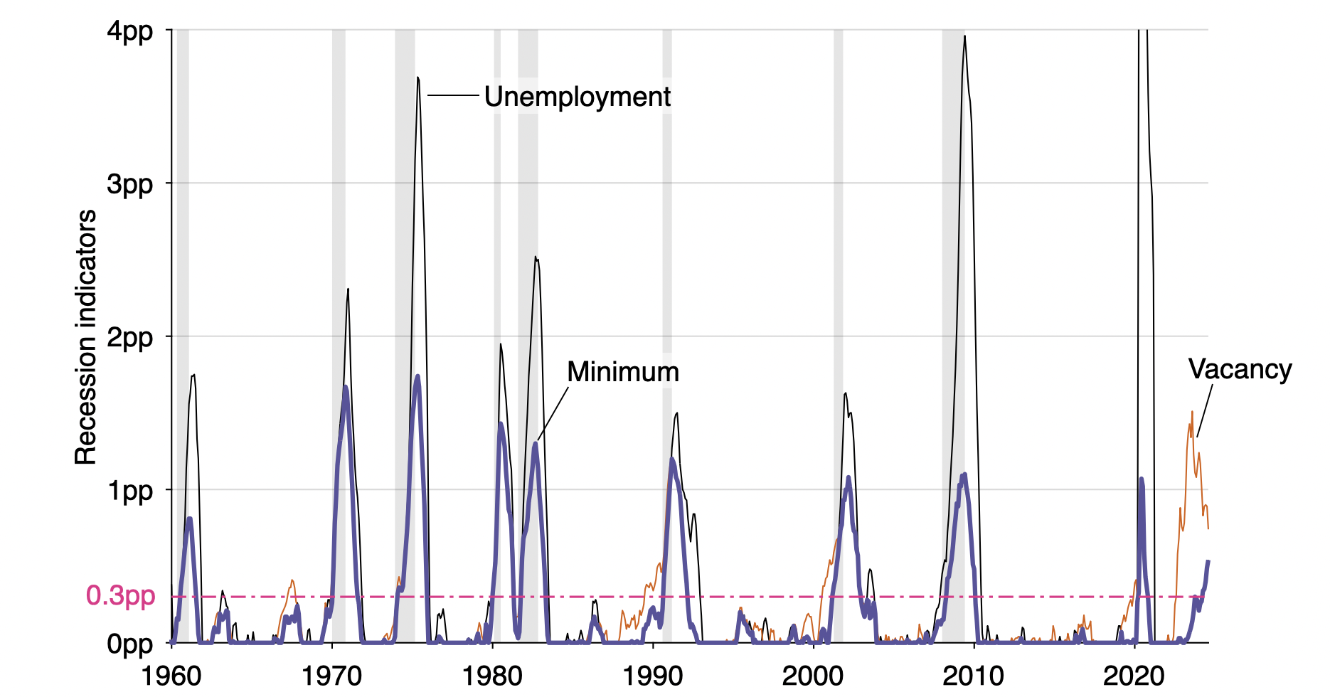 Figure 2B: Construction of the recession indicator in the United States, 1960–2024